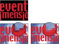 具有预乘通道的素材项(上图)被解释为“直接 - 无遮罩”(左下图)时出现黑色光晕。当素材项被解释为“预乘 -有彩色遮罩”并且背景颜色指定为黑色时没有出现光晕(右下图)。